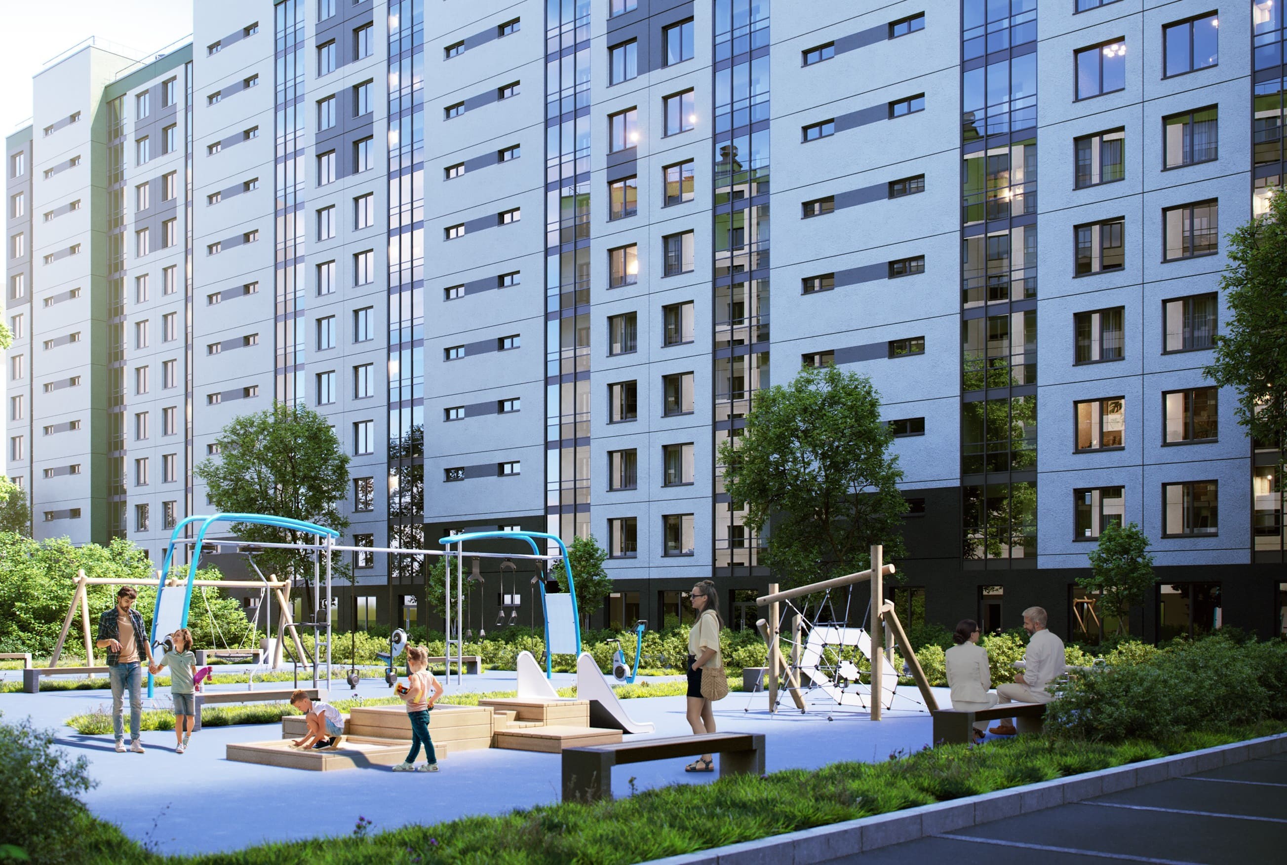 Аэросити 4 продолжает концепцию безопасного и уютного пространства, воплощая ее во всех объектах квартала. Два 12-этажных корпуса формируют закрытую зеленую территорию с современными детскими площадками из термодерева и мини-стадионом. Все зоны активностей оснащены мягким покрытием.